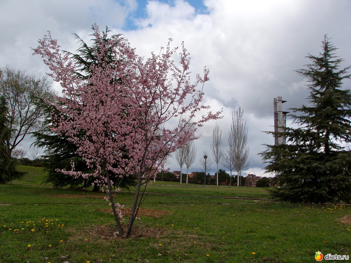 А я и не знаю, что это. Скорее всего это дикий миндаль, а может и не он. Если до следующих выхов не облетит, то сфоткаю.