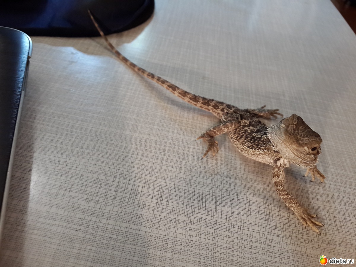 Спит за пазухой. Кстати, смотреть ужастики с ящерицей, которая спит на груди, просыпается раз в 15 минут и куда-то бежит - рекомендую!