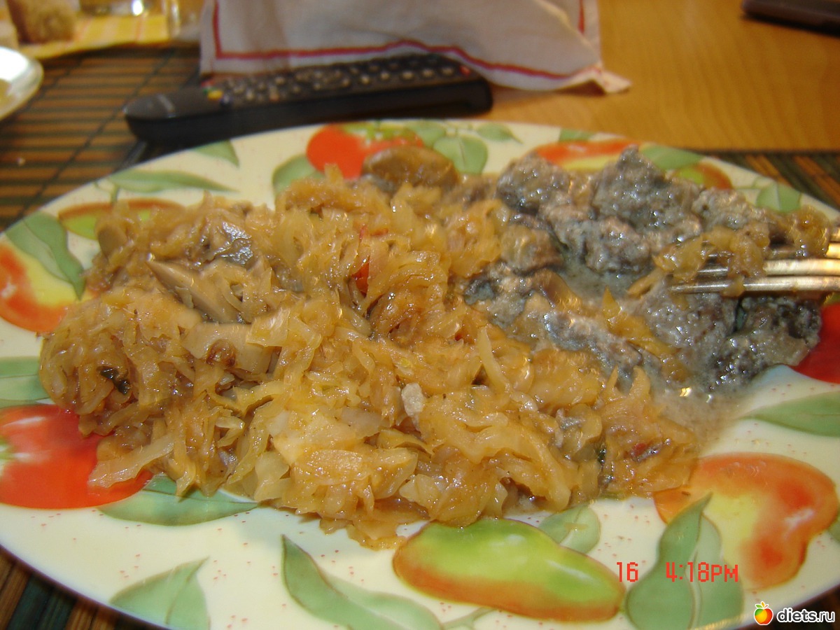 Капуста тушеная с грибами на гарнир.Печень индюшкина,тушеная в йогуртовой подливе в мультиварке., альбом: Набор "юной"Дюканочки..И блюда готовые...