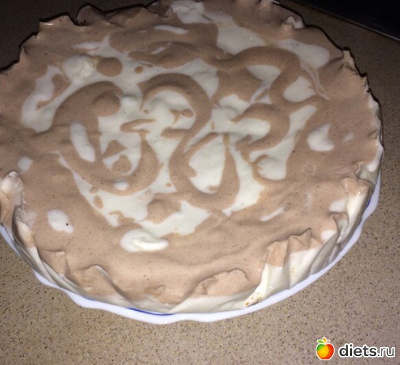 Творожок слегка взбить с сахзамом, и тонкой струйкой вливать желатин, продолжая взбивать минут 5. Я потом разделила на две части. В одну добавила какао 2 ч.л