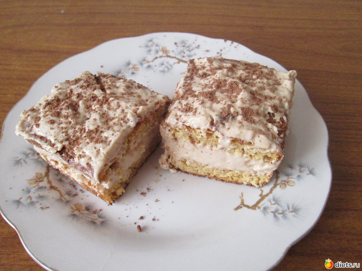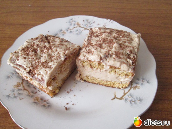 Бисквит разрезать на 2 коржа. Нижнюю половину уложить в форму, свержу выложить 90% крема и накрыть вторым коржом, Обмазать его сверху, можно посыпать корицей, как у меня. Поставить в холодильник на 30 мин- 1 час, чтобы крем застыл.