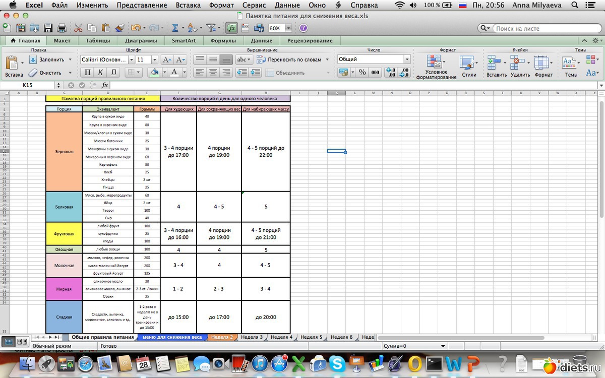 Ежедневный рацион порций питания для худеющих/сохраняющих вес/набирающих мышечную массу, альбом: Проект "Элавия дарит стройную фигуру вместе с Мисс-Спорт 2013"
