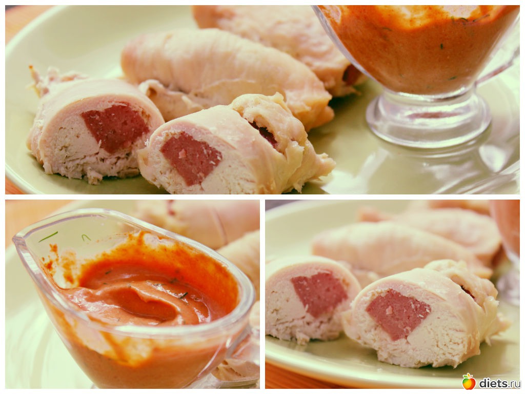соус: 1 ч.л. томатной пасты+ 1ч.л. мягкого творожка, добавить укроп, специю паприка.