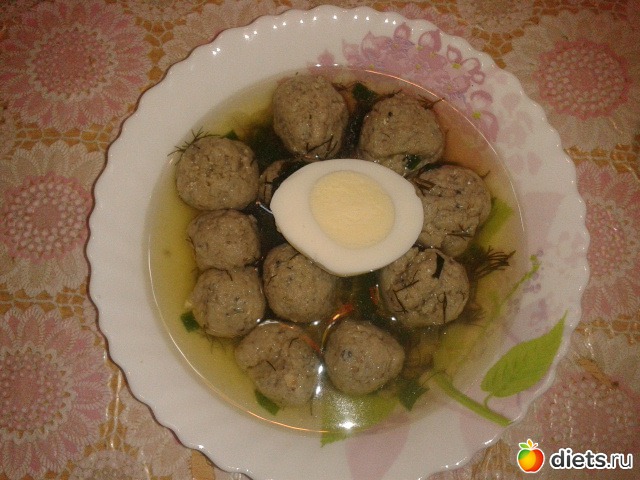 Рыбные фрикадельки с бульончиком и пол яйца)