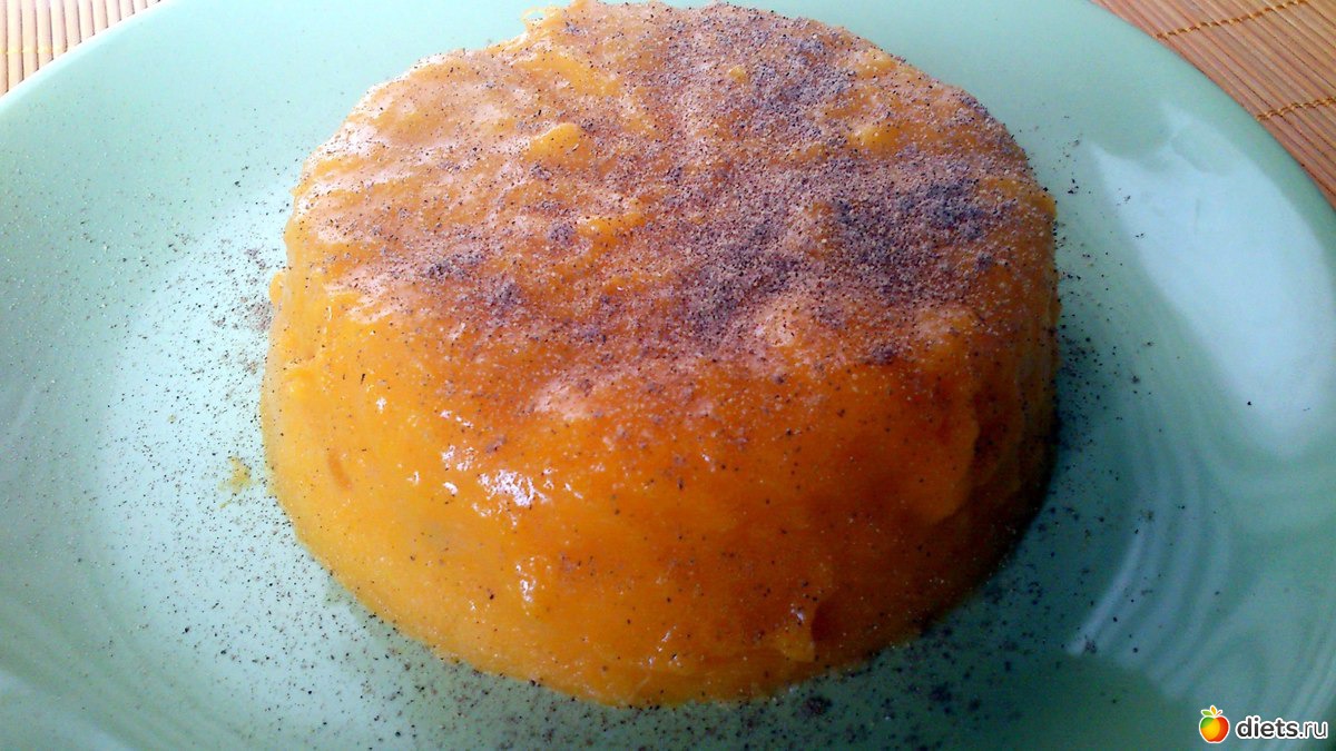Тыкву нарезать кубиками, залить водой, добавить лимонку и поставить на огонь, когда закипит, добавить сахзам и варить до готовности. Это приблизительно минут 30. После охладитьи взбить блендером в пюре или протереть через сито. В молоке замочить желатин для набухания. Прогреть его, но до кипения не доводить. Смешать пюре и молоко с желатином. Добавить аромик. Вылить в форму и поставить в прохладное место до застывания.