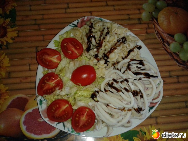 «макароны с кальмарами с соусом Торрионе и овощи»