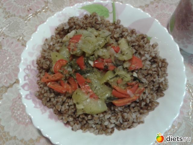 Отварная гречка+ тушеные(кабачок,перец,лук,помидорка)