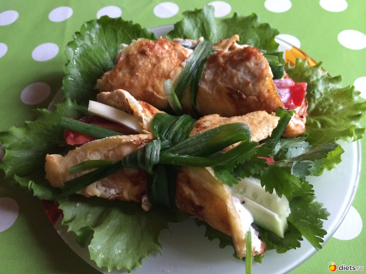 Смазываем дю-майонезом с чесноком, можно кетчупом бех сахара, посыпаем сыром до 7%, помидорами, можно добавить огурец свежий и репчатый лук, кинзу. Сворачиваем аккуратно рулетом.