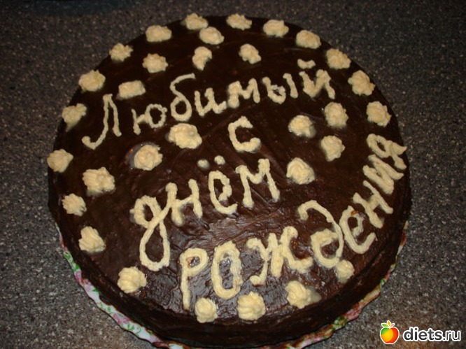 На первую половину коржа выкладываем начинку, накрываем второй половинкой и сверху покрываем глазурью! Торт должен не менее 12 часов постоять в холодильнике.