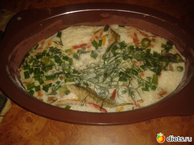 Филе судака уложила в силиконовую форму,Насыпала немного замороженой овощной смеси,залила взбитыми 2 яйцами с молоком,Готовила на пару в мультиварке мин 20-25.