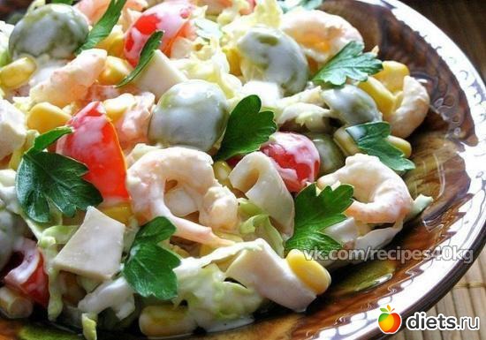 В Сметану добавим соль и перец по вкусу, рубленый чеснок и можно немного капель лимона. Заправим наш салат из креветок полученным соусом.