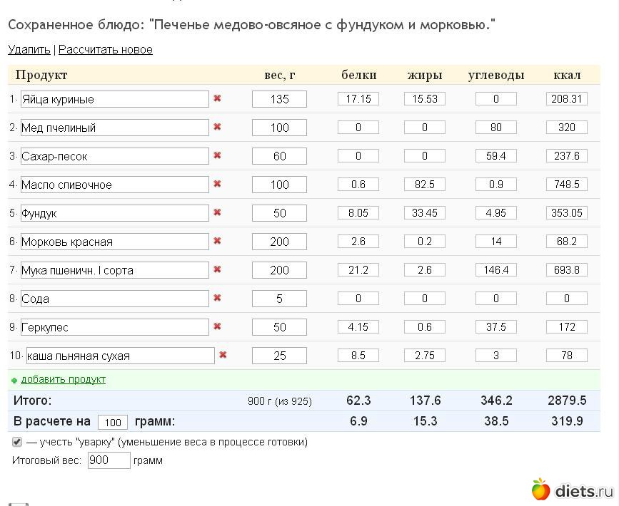 Печенье медово-овсяное с фундуком и морковью., альбом: рецепты с БЖУК