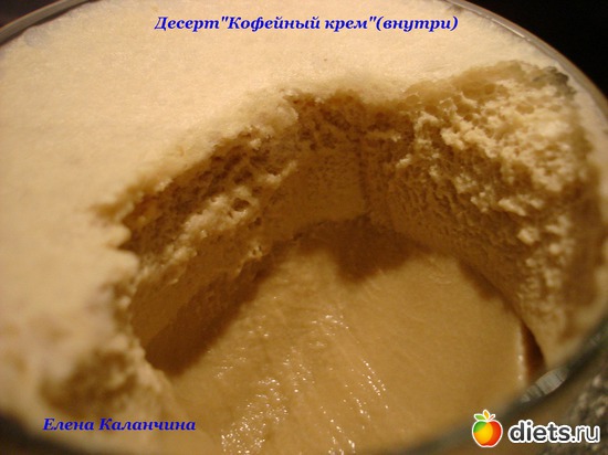 Желатин замочить в воде до набухания. Затем поставить на маленький огонь и растворить его, не доводя до кипения!!!(Я НАГРЕВАЮ В МИКРОВОЛНОВКЕ). Кофе растворить в горячем молоке. Сахар хорошо растереть с желтками и соединить с чуть остывшим кофе с молоком, все хорошо перемешать. Слегка остудить растворенный желатин и соединить его с кофейной смесью. Отдельно взбить сливки или сметану и соединить с кофе, хорошо перемешать. Все разлить в креманки и поставить в холодильник.Десерт обалденный,нежнейший крем с ароматом кофе,я делала со сливками,все взбивала миксером,всем рекомендую!!!Приятного аппетита!