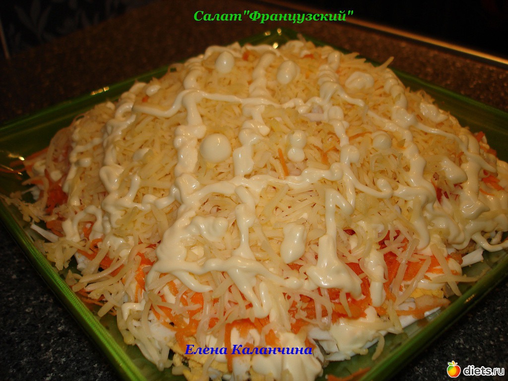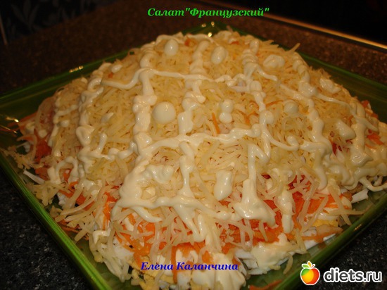 Повторяем слои: 1 яблоко, 2 яйца, 1 морковка, сыр.