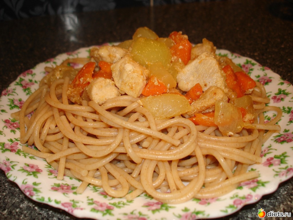 цельнозерновые спагетти и курочка с овощами, альбом: Мои вкусняшки