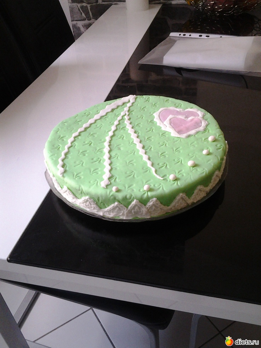 После покрытия мастикой торт переворачиваю на досу, чтобы края мастики завернуть на дно, и накрываю подложкой или подносом - так все ровно и аккуратно получается.