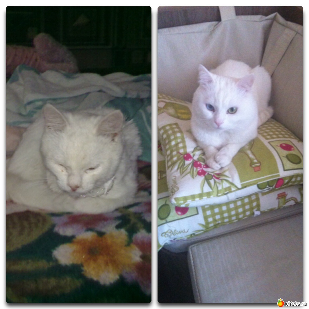 Было-стало:))) вот такого заморыша мне привезли, пообещав, что везут белое пушистое чудо:) а это чудо оказалось блохастое, сопливое и грязное:) теперь, спустя 4 года, это самый любимый зверь:)), альбом: Васятко