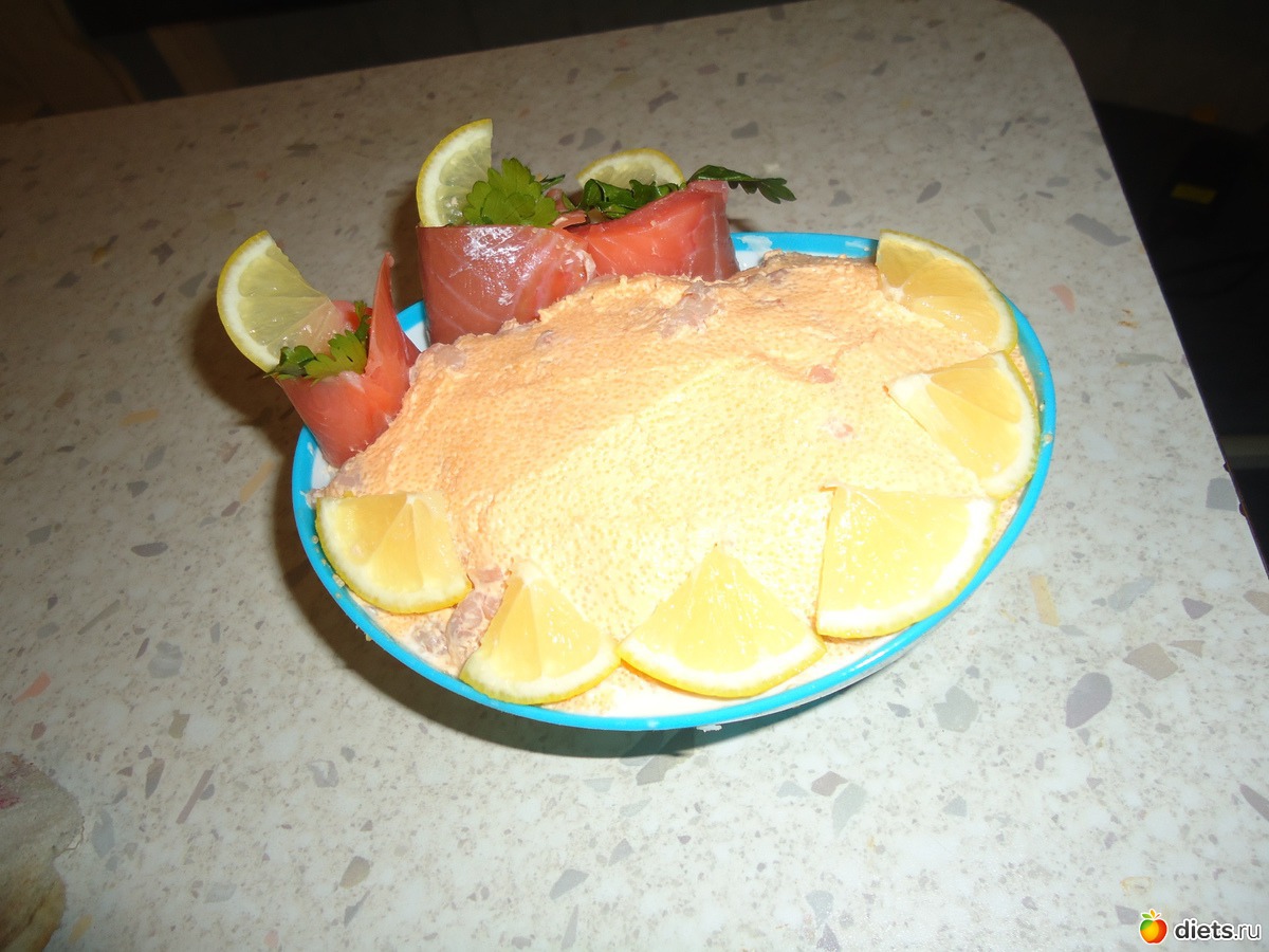 На дно...1- кета из банки+тертый через терку белок варен. яйца+икра подкопченная- мойвы+варенные креветки+ опять икра мойвы.....майонеза нет...вообще