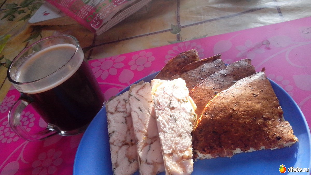 Эти дю лепешка, колбаска куриная из филе домашняя и кофеек!)