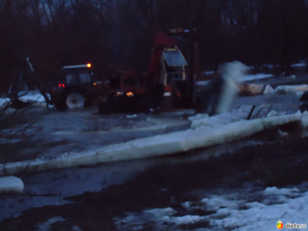 «Это техника работала всю ночь раскалывала льдины.Перекидывала их через мостик.Еслиб не работали льды встали и вода пошла б вся к нам.»