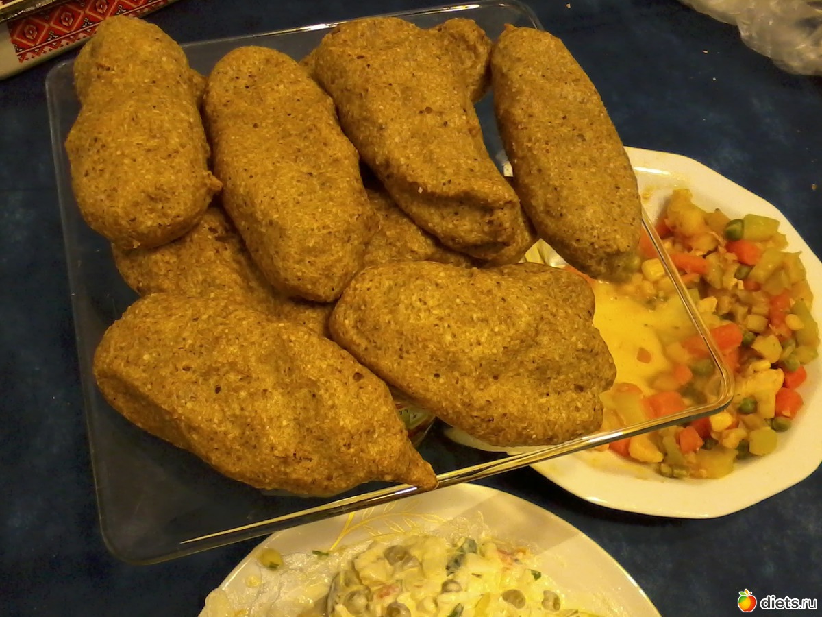 Мокрыми руками свалять шарики или колбаски, выложить на противень в разогретой до 200 градусов духовке. Убрать темепратуру до 150 и печь 15-25 минут в зависимости от печи.