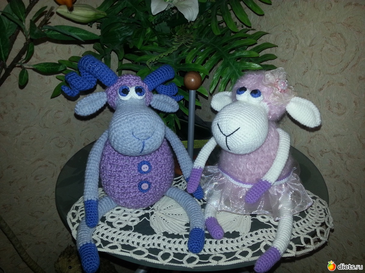 Эту парочку я к Новому году связала. Сначала родилась овечка, а потом я решила, что ей нужен кавалер. И связался барашек.