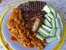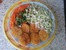 крахмальный обед-плов с грибами+тушеные кабачки