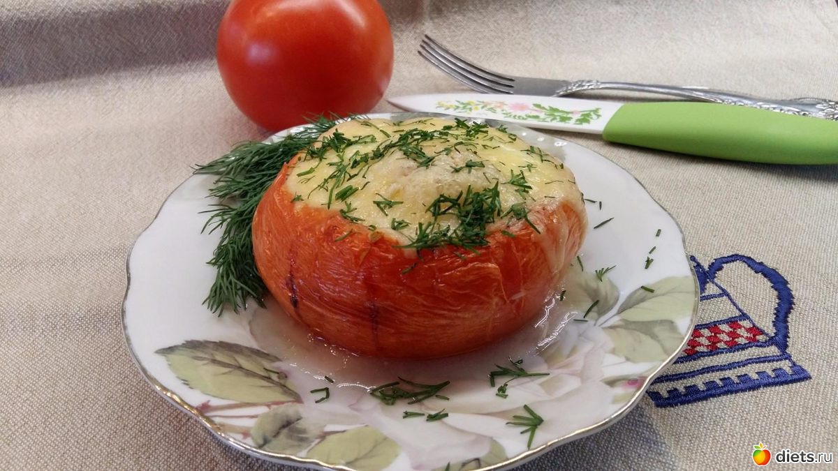 «Яичница в помидоре из духовки - с сервелатом и зеленью под сырной корочкой»