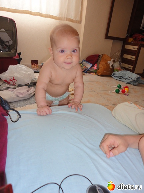 в маечке и носочках старшего товарища (мальчика 4 лет)