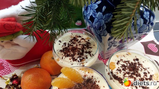 «Десерт "Мандарины в снегу" с белым шоколадом, сливками и йогуртом»