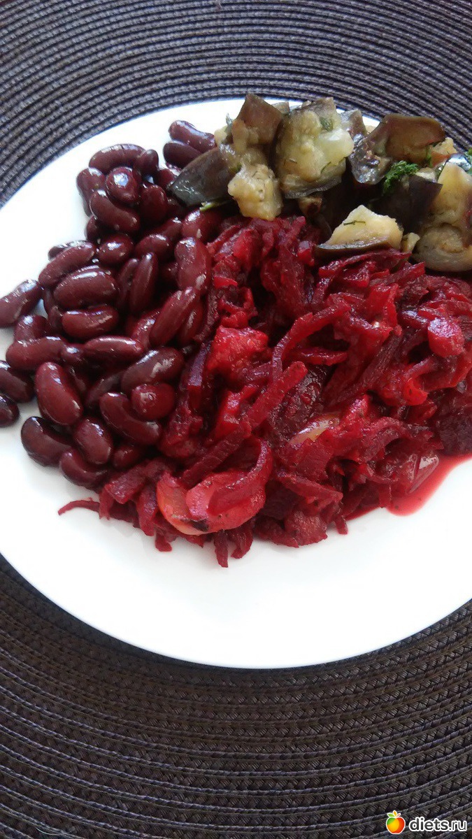 крахмальный день - свекла тушёная, красная фасоль и баклажаны туш.