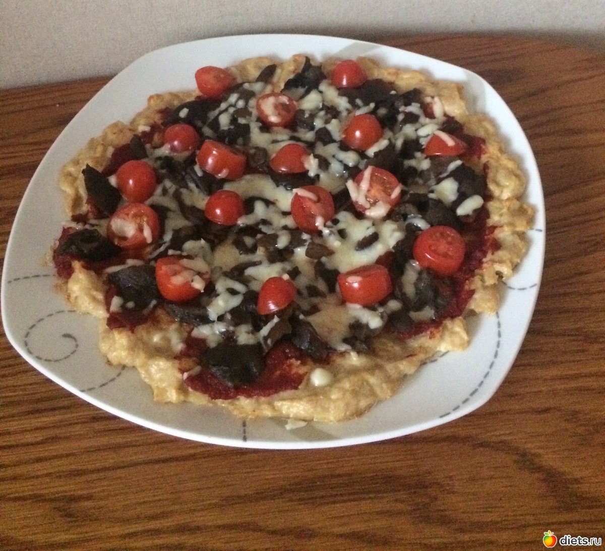 Все перемешать блендером, посолить и поперчить. Выложить либо на пергамент или на силиконовый коврик ровный круг и отправить выпекаться на 20-25 мин притемпературе 170 градусов. Затем достать смазать томатной пастой или томатной пастой смешанной со сметаной выложить грибы, томаты Черри, зелень и посыпать тёртым сыром. ( начинка может быть любая)