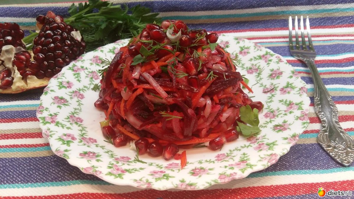 «Салат из квашеной капусты, свеклы, моркови с гранатом вкусный и полезный»