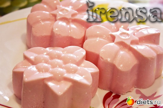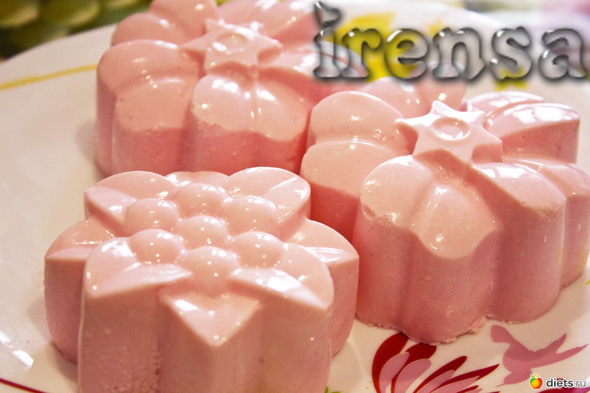 Теперь берём миксер или венчик и взбивая массу, подливаем тёплый желатин. Заливаем в форму и убираем в холодильник, пока не застынет.