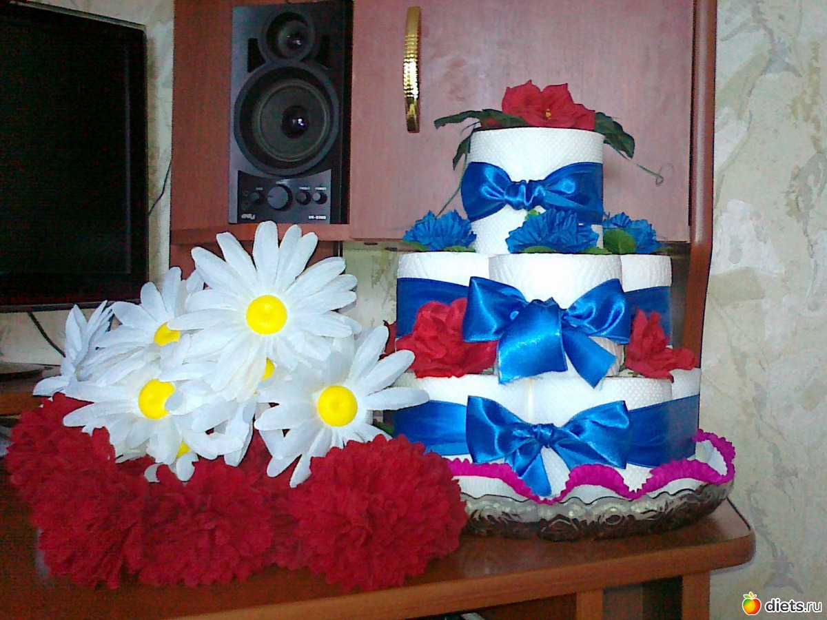 3 фото: тортик из туалетной бумаги