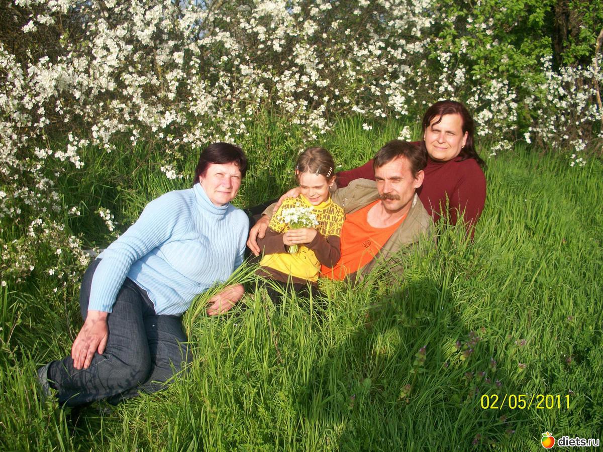 «Мы на природе. Я, муж, дочь Лиза и заловка. Отдыхали, ловили рыбу, жарили шашлыки....солнце палило, даже загорели немножко...»