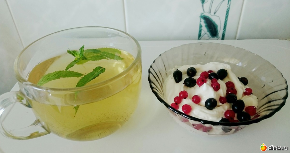 «Творог с ягодами и зелёный чай с мятой»