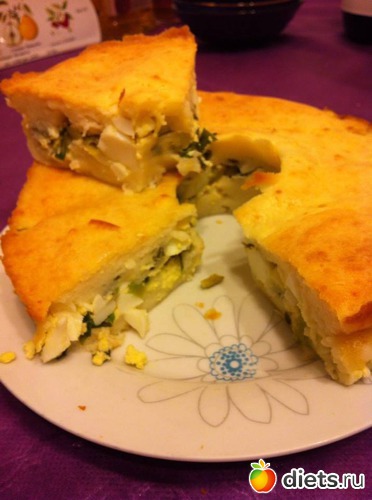 Поставить пирог в разогретую до 200 °C духовку. Выпекать около 35 минут, до румяной корочки.