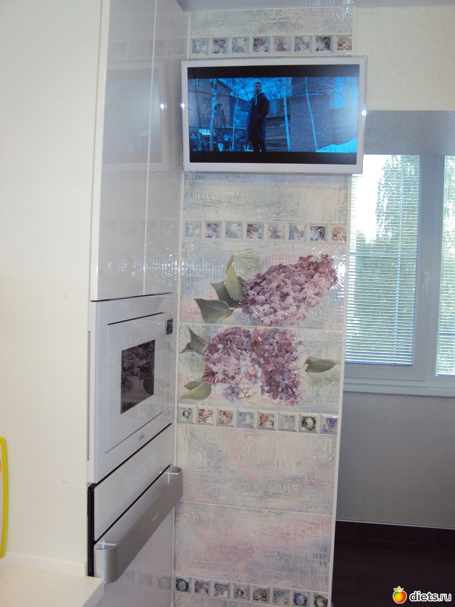 Наверно, телевизор ты смотришь, когда готовишь, потому что от стола, кажется, смотреть его не очень удобно. У меня, например, телевизор служит только для звукового фона, да муж по утрам за завтраком новости смотрит. А кино я в компе смотрю, так удобнее мне