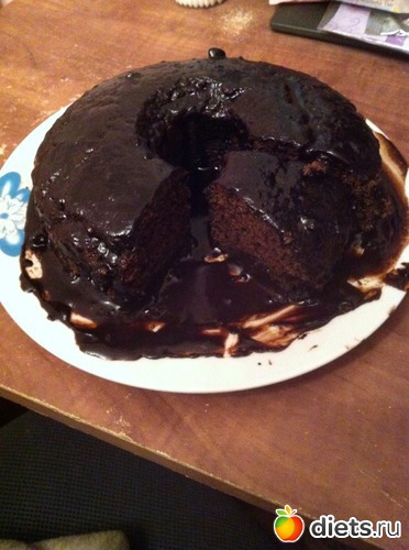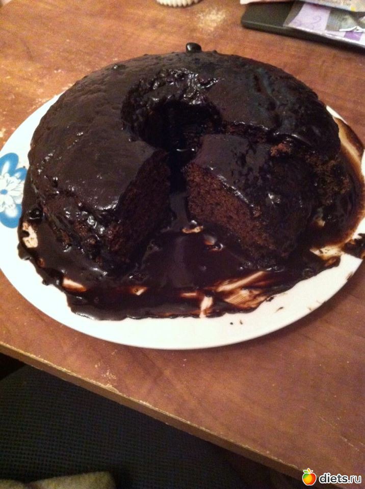 Залить торт горячим кремом.