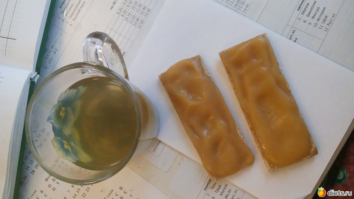 «Полдник 17.01.17 2 хлебца с яблочным пюре, имбирный чай»