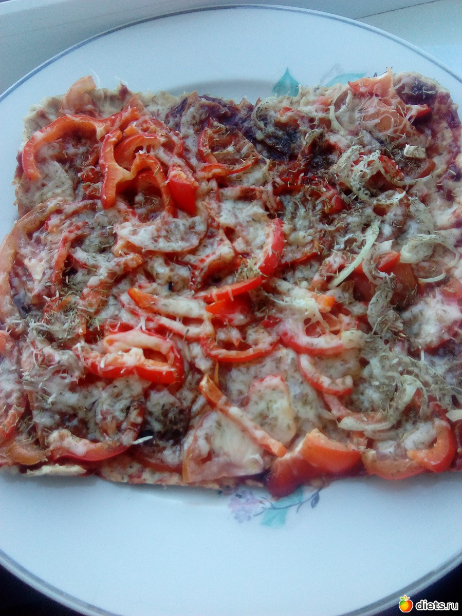 пицца на основе из куриной грудки с болгарским перцем, помидорами , обезжиренным сыром и прованскими травами