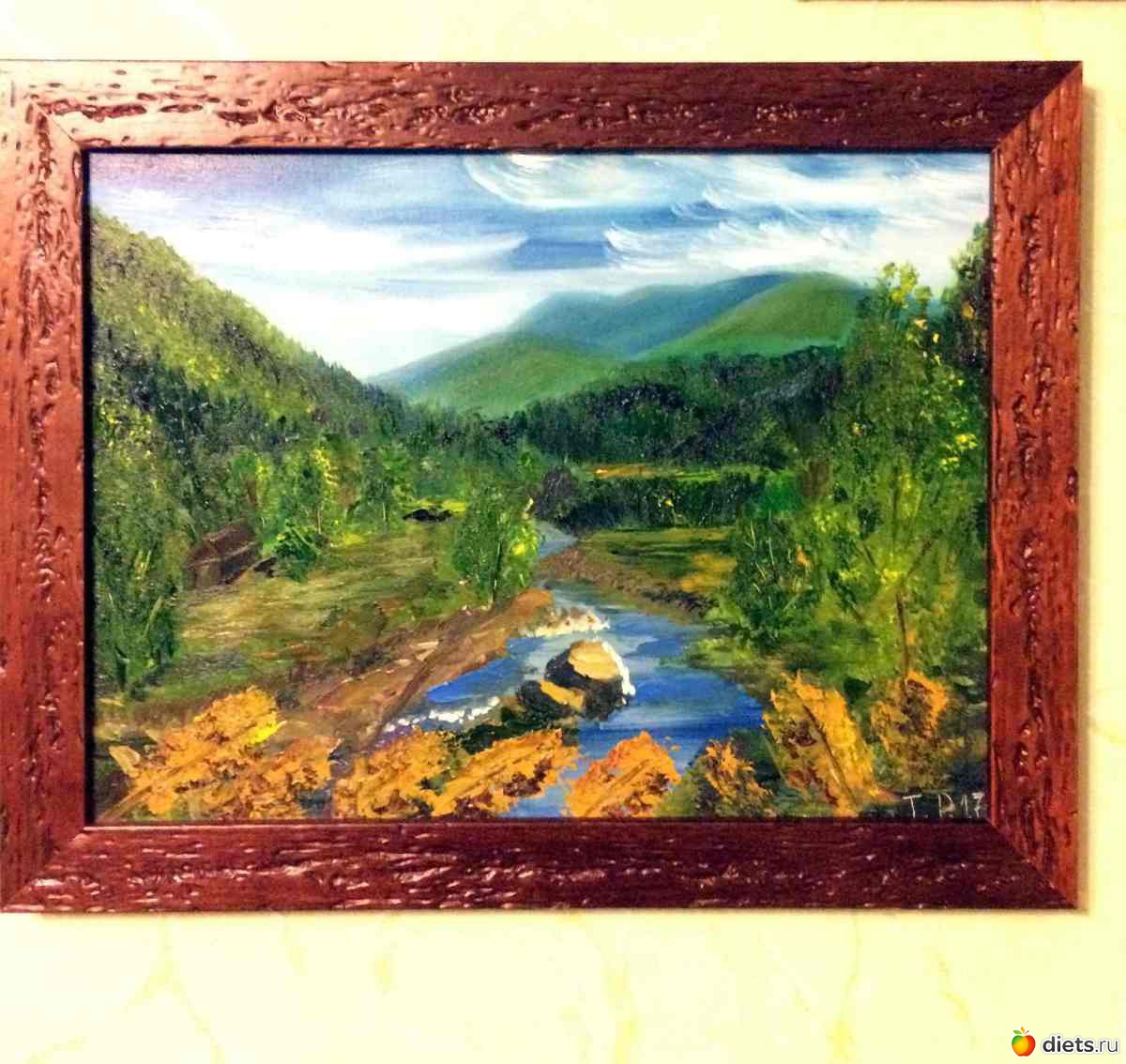 Горное озеро. Медитативное рисование. Холст на картоне 40*50, акрил