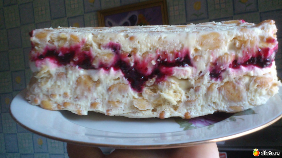 Потом выстелить пищевой пленкой любую форму или мисочку и слоями уложить замоченные рыбки, порезанные вдоль зефирки и слой у меня здесь смородинного варенья (без варки) для кислинки.