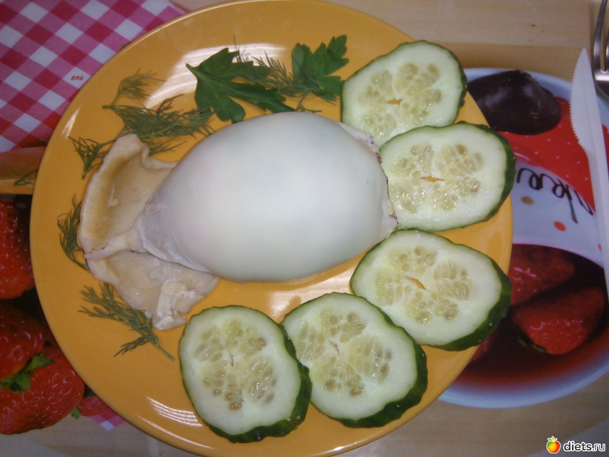 Пшенная каша и закуска из огурцов( на кругляшки огурцов выкладываю смесь из вареной куриной грудки, лука, зелени, сметаны и чеснока) Источник: http://www.diets.ru/post/1734093/