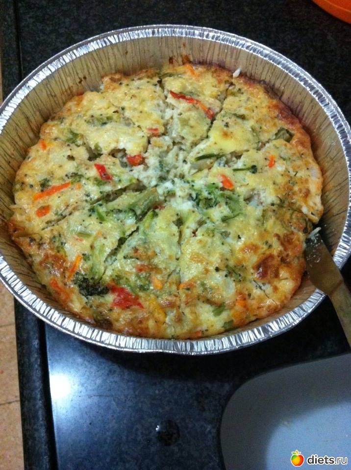 4 ложками муки и 2 ложками хлебных крошек.В рецепте ещё 100 грамм накрошенного желтого сыра, но уменя не было под рукой - положила грамм 30 накрошенной моцареллы и грамм 50 желтого. Посолить, поперчить, чуть масла в форму и запекать до чуть желтого верха.