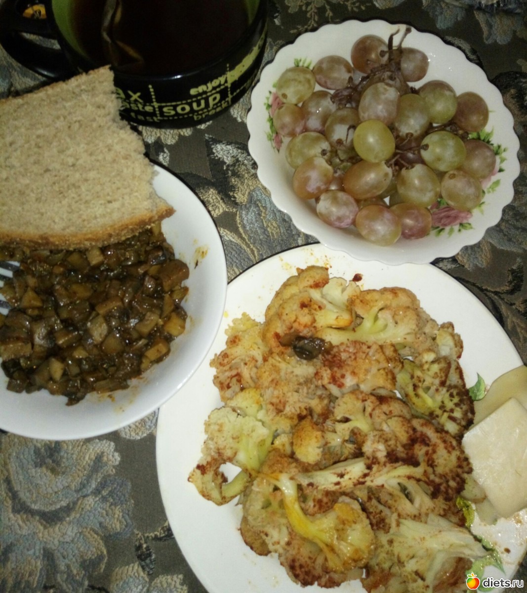 «Цветная капуста отварная и перемешана с паприкой.шампиньоны,тушеные с луком и сухой аджикой.»