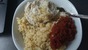 Котлета- 100 грам (161,5 ккал), и пшено 268 грам(162,14ккал).