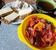 Цветная капуста отварная и перемешана с паприкой.шампиньоны,тушеные с луком и сухой аджикой.