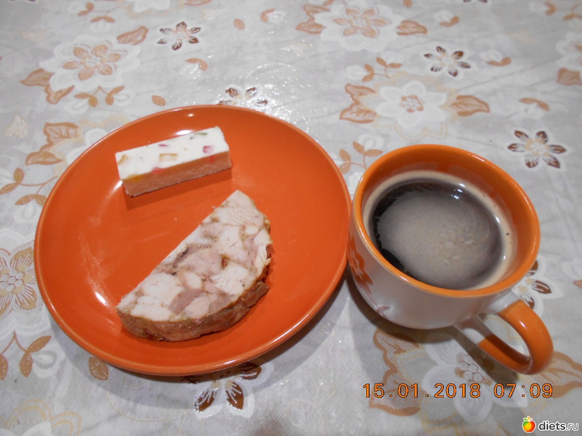 Зпавтрак: домашняя куриная ветчина 60г, пастила с зефиром 30г, кофе, альбом: еда 15.01